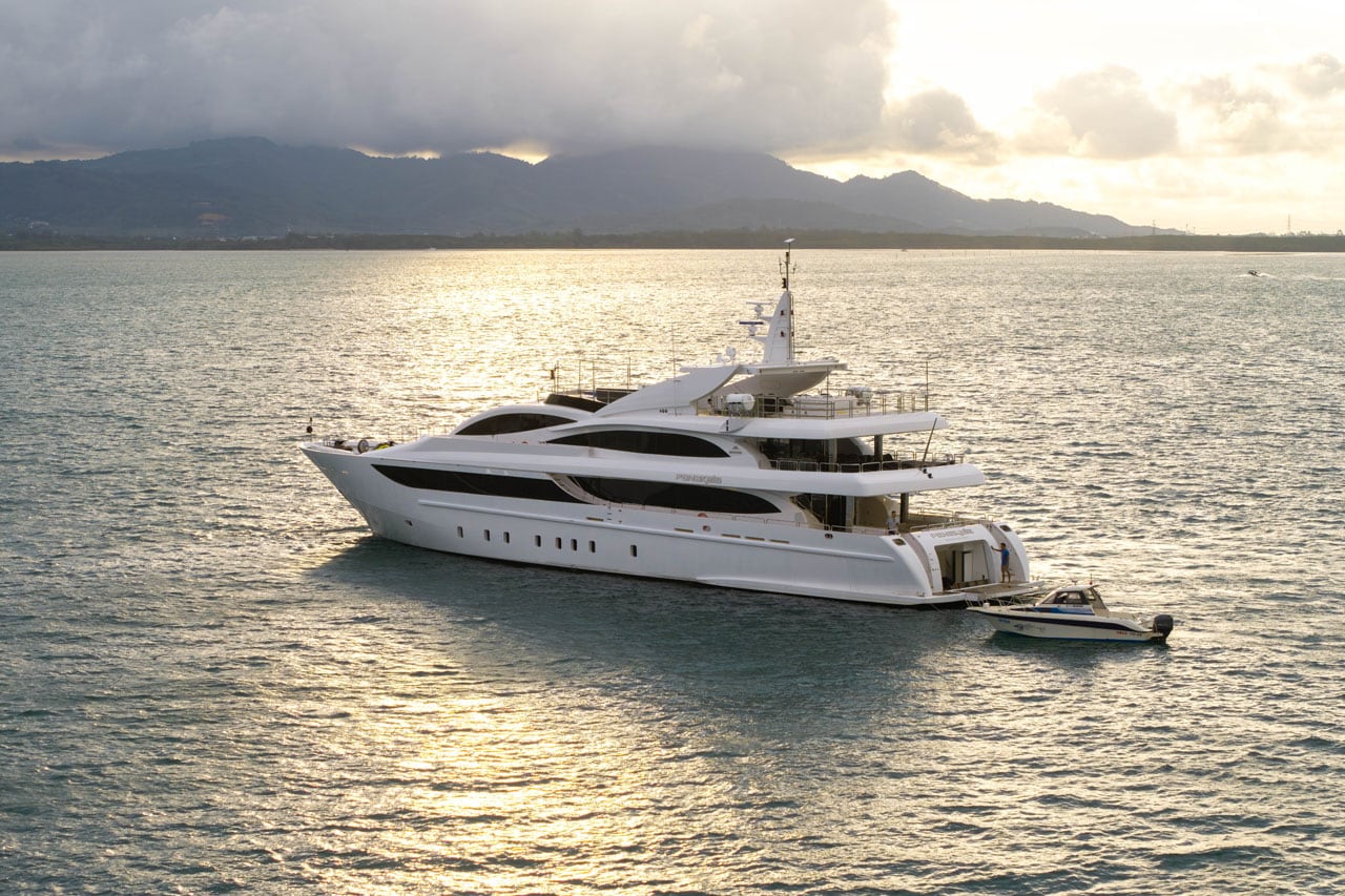 The 45.5-meter superyacht Astondoa combines luxury and relaxation. Designed by Cristiano Gatto, this yacht features spacious interiors, large decks, and a variety of water toys. It is an ideal choice for a lavish superyacht charter experience in Phuket.